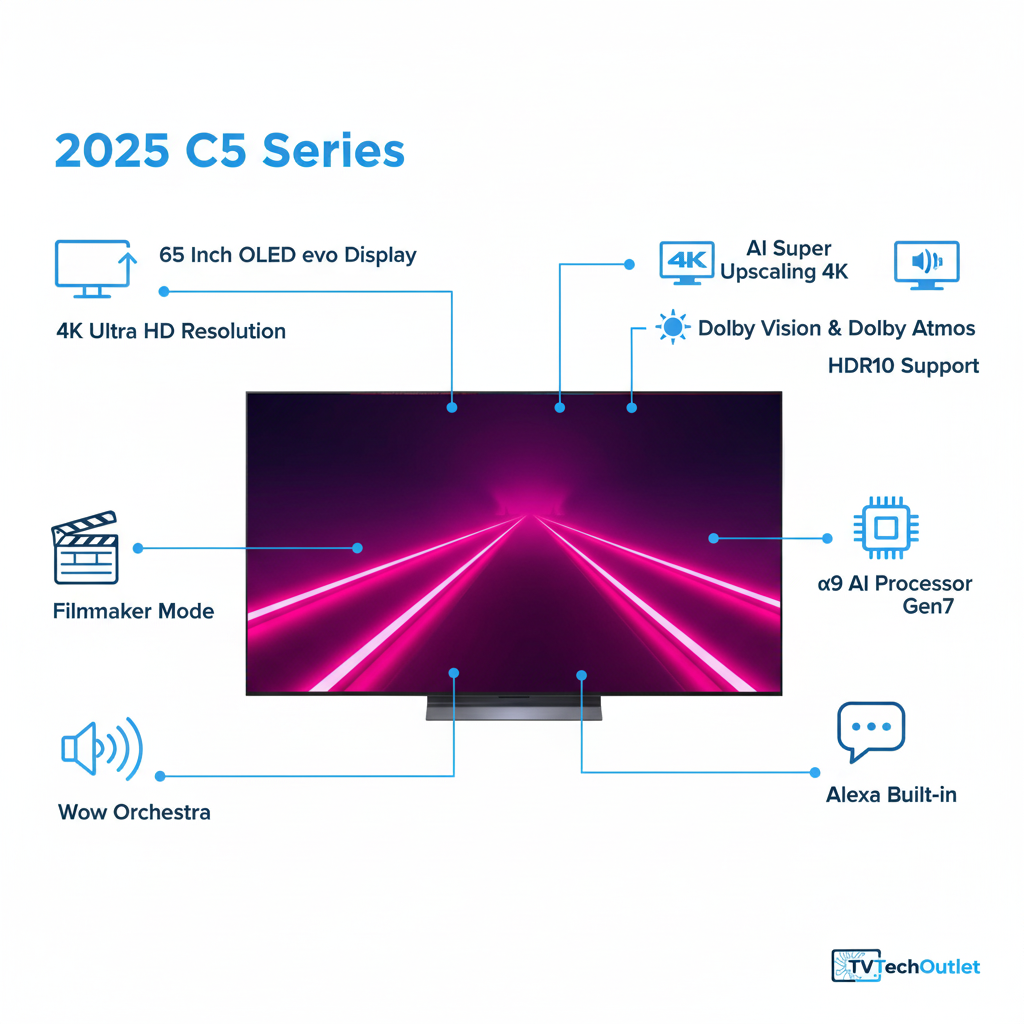 LG 65-Inch Class OLED evo AI 4K C5 Series Smart TV w/Dolby Atmos, Dolby Vision, HDR10, AI Super Upscaling 4K, Filmmaker Mode, Wow Orchestra, Alexa Built-in (OLED65C5PUA, 2025)
