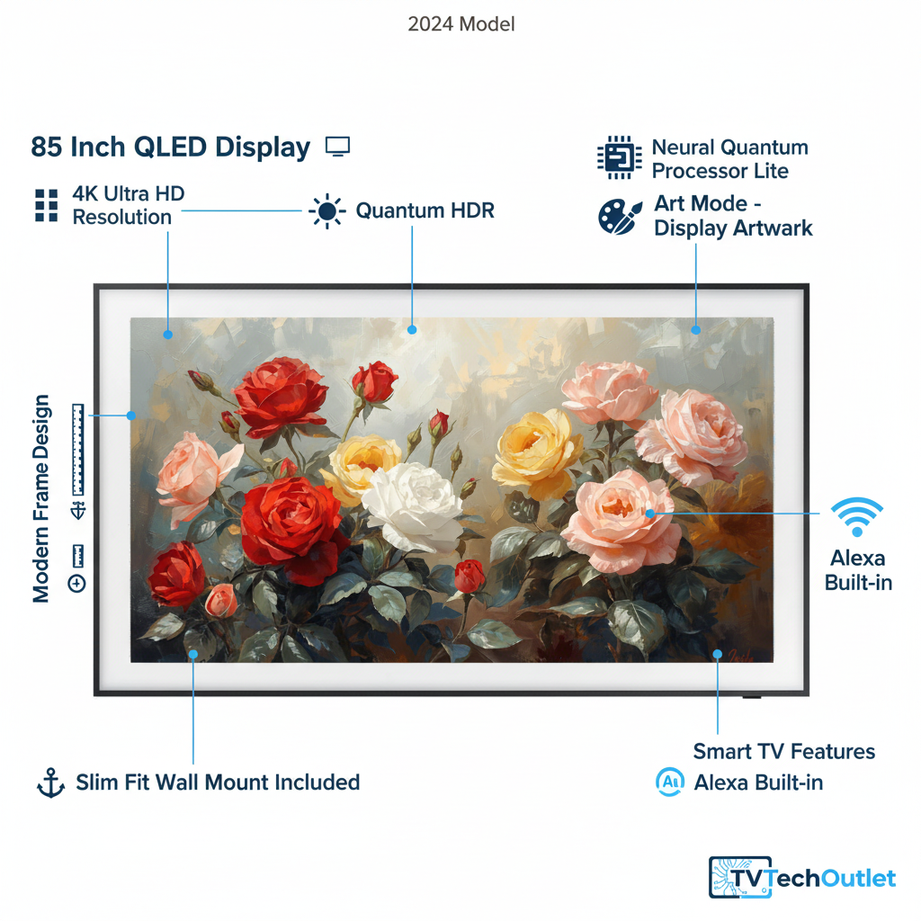 Samsung 85-Inch Class QLED 4K LS03D The Frame Series Quantum HDR Smart TV w/Dolby Atmos, Art Mode, Anti-Reflection, Customizable Frame, Slim Fit Wall Mount with Alexa Built-in (QN85LS03D, 2024 Model)